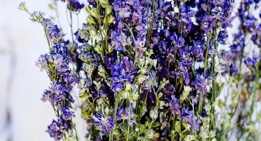Ontdek de klassieke elegantie van gedroogde Delphinium. Met zijn lange, statige stelen vol prachtige bloemen in diepblauwe of zachte tinten, voegt Ridderspoor direct hoogte en exclusieve allure toe aan jouw florale creaties en zakelijke projecten.