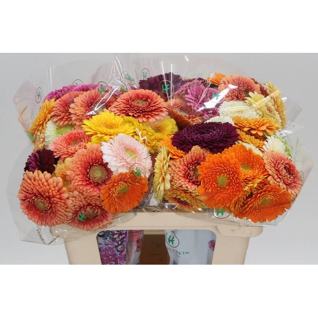 Germini Aqua “Pom Gemengd” | Kleur: Gemengde Kleuren | Lengte ± 50 centimeter | Per 20 verse bloemen