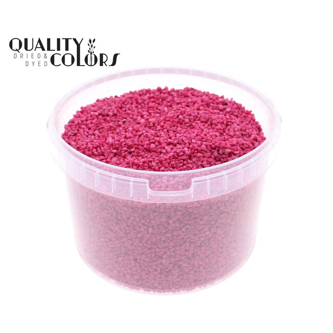 Fijne Steentjes in Herbruikbare Emmer (Kleur: Kerskleurig | Diameter 4–6 millimeter | Inhoud 3 liter | Per emmer) zijn hoogwaardige, natuurlijke decoratiekiezels van QC, ontwikkeld voor professioneel gebruik in bloemisterij, interieurontwerp en eventstyling. Dit granulaat levert een consistente, diepe kleur en een gelijkmatige korrelgrootte die visuele samenhang geeft in vazen, tafeldisplays en schaalvullingen; de herbruikbare emmer ondersteunt efficiënte opslag en transport en draagt bij aan een duurzamere bedrijfsvoering doordat materiaal langer inzetbaar blijft.