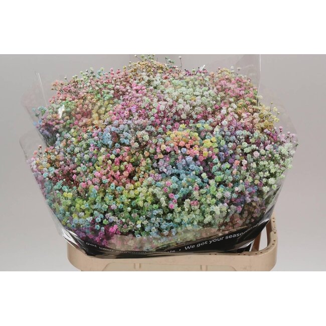 Gypsophila Gipskruid Kleurbehandeld “Rainbow Pastel” | Kleur: Gemengde Kleuren | Lengte ± 80 centimeter | Per 25 stelen verse bloemen