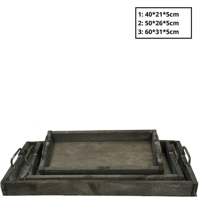 Hout Tray Sturdy S/3 60*31*5cm