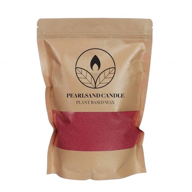 Pearlsand Kaarsvet + 4 lonten | Kleur: Bordeauxrood | Plantaardige Was | Inhoud 400 gram | Per zak
