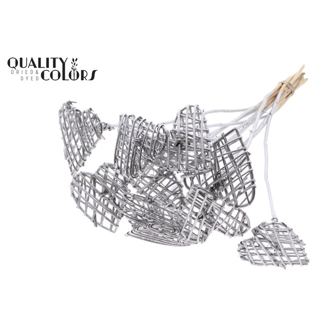Rotan Lata Hart op stok | Kleur: Zilverkleurig | Platte Bijsteker | Lengte ± 50 centimeter | 10 bijstekers per bos | Per bos