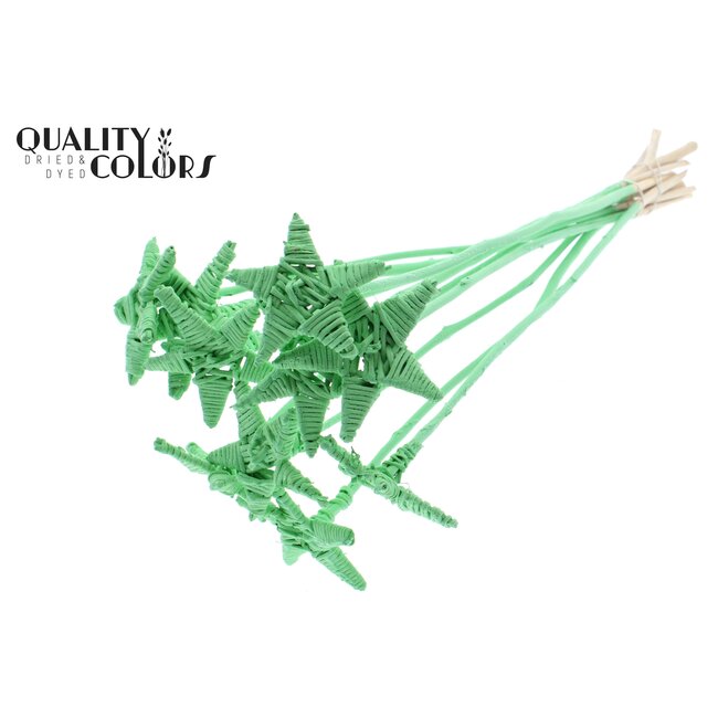 Beoordeel QC Rotan Lata Ster op stok | Kleur: Mintgroen | Platte Bijsteker | Lengte ± 50 centimeter | 10 bijstekers per bos