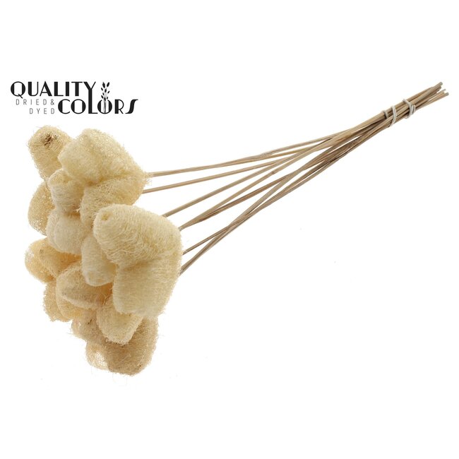 Luffa Hart Spons op stok | Kleur: Naturelle Wit | Loofah Bijsteker | Lengte ± 50 centimeter | 10 bijstekers per bos is een robuuste, natuurlijke bijsteker ontworpen voor professionele bloemisten en decorateurs die zoeken naar duurzame, onderhoudsarme basismaterialen. Dit loofah-hart op stok biedt een consistente vorm en structuur voor creatieve toepassingen in bloemstukken, tafelstukken en seizoensdecoraties en past perfect binnen de categorieën Bijstekers, Bloemisterijartikelen en Huis & Hobby. Gemaakt van 100% natuurlijk materiaal en geleverd door QC, staat dit product garant voor hoge kwaliteit, lange houdbaarheid en een duurzaam profiel dat goed aansluit bij ecovriendelijke projecten en hoogwaardige event- en interieurstyling.