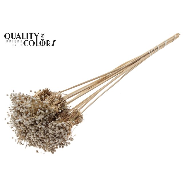 Mini Knoopsbloemen Boeketje op stok | Kleur: Naturelle Wit | Mini Button Bijsteker | Lengte ± 50 centimeter | 10 bijstekers per bos — dit product is een zorgvuldig vervaardigde, natuurlijke bijsteker van het merk QC, ontworpen voor consistentie en professionele toepassing. De fijne, naturel-witte knopjes op stabiele stokken bieden bloemisten, interior designers en event planners een onderhoudsarm en duurzaam materiaal voor corsages, tafeldecoraties, rouwwerk en seizoensgebonden arrangementen. Dankzij hoogwaardige materiaalkeuze en strenge kwaliteitscontrole zijn de mini knoopbloemen kleurvast, structureel betrouwbaar en ideaal voor grootschalige projectinrichting en herhaalde inzet bij evenementen waar uniformiteit en esthetiek essentieel zijn.