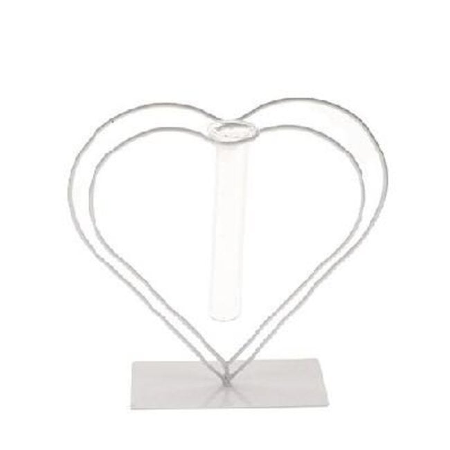 Productdetails: Hart Frame met Buis Vaasje | Kleur: Natuurlijk Wit; Afmetingen: lengte 15 cm × breedte 8 cm × hoogte 23 cm; Besteleenheid: per 4 stuks; Categorieën: Bloemisterij Artikelen, Gelegenheid Artikelen, Potten & Vazen, Huis & Hobby, Huis, Tuin & Deco; Materiaal: overige materialen; Kleuren: naturel, wit. Toepasbaarheid: ideaal voor floristen, interieurontwerpers en event planners voor tafeldecoraties, cadeaustyling en thematische displays; uitstekend te combineren met droogbloemen zoals gedroogde rozen, papaver, broom, ruscus en Helichrysum of met hoogwaardige zijdebloemen voor onderhoudsarme arrangementen. Unieke verkoopargumenten: strak en herkenbaar design dat consistentie in presentatie biedt, hoogwaardige afwerking die herbruikbaarheid en langdurige esthetiek garandeert, en een duurzame positionering die past bij milieubewuste projecten en commerciële inrichting.