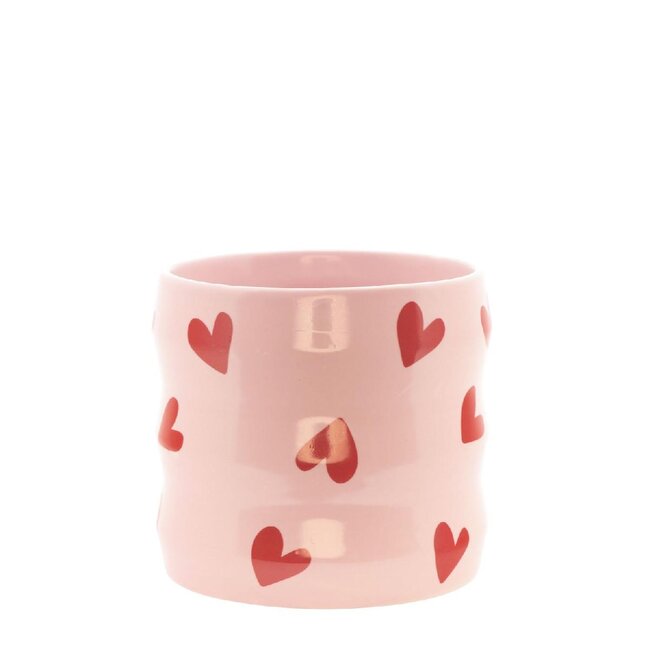 Keramiek Bloempot “Hearts” | Kleur: Roze | Diameter 9 centimeter | Hoogte 9.5 centimeter | Per 8 bloempotten — Deze elegante roze keramiek bloempot met subtiel hartmotief is ontworpen voor professionele toepassingen in bloemisterij, interieurprojecten en evenementendecoratie. De pot heeft een diameter van 9 cm en een hoogte van 9,5 cm en wordt geleverd per 8 stuks, waardoor de verpakking en afname aansluiten op de behoeften van bloemisten, interieurontwerpers en event planners. Als product van 4A combineert deze bloempot esthetiek en consistentie, perfect voor seizoensgebonden collecties zoals Moederdag, Trouwen en Valentijn, en past hij naadloos binnen categorieën als Potten & Vazen, Huis & Hobby, Huis, Tuin & Deco en Gelegenheden.