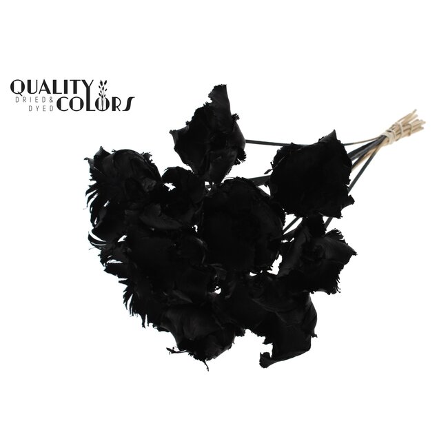 Gedroogde gebleekte Palm Cup op steel (Kleur: Zwart | Lengte ± 50 centimeter | 10 stelen per bos) is een hoogwaardige, duurzame keuze voor professionele bloemisten, interieurontwerpers en eventplanners die robuuste, onderhoudsarme structuren en langhoudende ontwerpen vereisen. Deze natuurlijke Arecaceae-palm is zorgvuldig gebleekt en gestabiliseerd voordat hij diepzwart wordt gekleurd om kleurconsistentie en een verfijnde uitstraling te garanderen; de stevige steel van ±50 cm en de set van 10 stelen per bos maken het product bijzonder geschikt voor grotere installaties, duurzame interieurprojecten en receptie- of eventdecoraties. Als onderdeel van het assortiment van QC biedt dit artikel dezelfde kwaliteitsstandaarden en traceerbaarheid die professionals verwachten, en laat het zich uitstekend combineren met andere droogbloemen zoals gedroogde rozen, Helichrysum, ruscus, papaver en broom voor veelzijdige, langdurige composities.