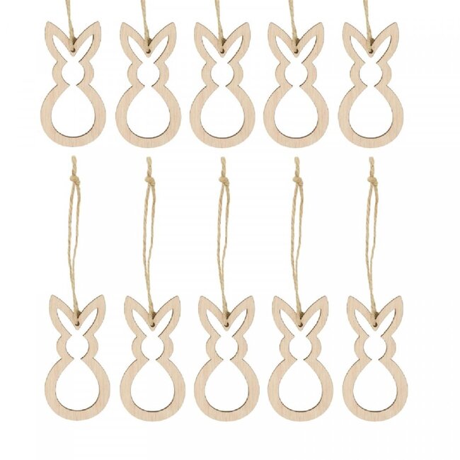 Houten Haas Hanger | Kleur: Lichtbruin | Breedte 5 centimeter | Hoogte 10 centimeter | Per 10 hangers is een verfijnd, ambachtelijk vervaardigd decoratie-element dat speciaal is ontwikkeld voor professionele toepassingen in Pasen- en homedeco-concepten. Dit lichtbruine houten haasje combineert een consistente afwerking met duurzame materialen, waardoor het uitstekend inzetbaar is voor bloemisten, interieurontwerpers, event planners en groothandels in de bloemisterij. Het product sluit naadloos aan bij seizoensgebonden assortimentslijnen zoals Pasen en biedt de robuuste uitstraling en herbruikbaarheid die in projectmatige en retailomgevingen van belang zijn; als onderdeel van het professionele 4A-assortiment (4A) staat het garant voor reproduceerbare kwaliteit en consistente kleurtonen binnen bulkleveringen.