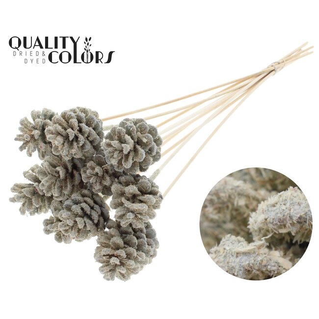De Dennenappel op stok in sawdust crèmekleurig is een verfijnde, natuurlijke decoratieoplossing ontworpen voor professionele toepassingen; iedere stok heeft een diameter van 5 - 7 centimeter en een lengte van ± 50 centimeter, geleverd per bos met 10 bijstekers. Dit duurzame, natuurlijke materiaal combineert textuur en neutrale kleurstelling zodat bloemisten, interieurontwerpers en eventplanners consistente en stijlvolle accenten kunnen toevoegen aan seizoensarrangementen, tafelstukken en thematische installaties. De stevige bevestiging op stok maakt de bijstekers eenvoudig te verwerken in kransen, bloemstukken en creatieve hobbyprojecten, waarbij de crèmekleurige toon goed te combineren is met zowel frisse als warme paletten.