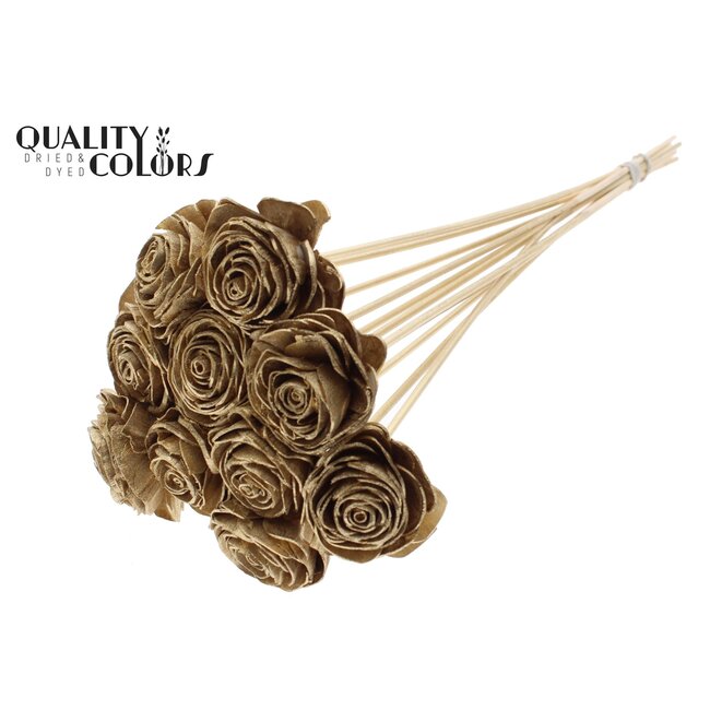 Shola Roos op stok | Kleur: Antiek Goudkleurig — de Shola Beauty Rose van QC is een hoogwaardige, natuurlijke kunstbloem ontworpen voor professionele toepassingen. Deze Beauty Rose uit de categorie's Beauty Rose, Shola Flowers en Kunstbloemen heeft een realistische uitstraling en een consistente afwerking: diameter 6 centimeter, lengte ± 50 centimeter, geleverd per bos met 10 bijstekers (besteleenheid: per stuk/per bos). Materiaal: natuurlijk shola; kleurstelling: antiek goudkleurig (relevant voor kleurenpaletten in geel-, metaalkleuren- en overige kleurcombinaties). Productcategorieën en toepassing vallen onder Bloemisterij Artikelen en Kunstbloemen, waardoor dit artikel makkelijk te integreren is in commerciële voorraden en projectbestellingen.
