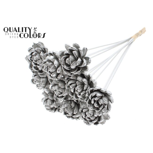 Kenmerken en professionele specificaties: productcategorieën Bloemisterij Artikelen en Kunstbloemen; besteleenheid: Per stuk; kleurpalet: Grijs, Metaalkleuren, Overige kleuren, Wit; materiaal: Natuurlijk (shola); diameter bloem ca. 6 centimeter; lengte ca. 50 centimeter; verpakking: 10 bijstekers per bos, geleverd per bos. Dit artikel sluit naadloos aan bij duurzame en langdurige concepten en werkt uitstekend in combinatie met onze gedroogde assortimenten zoals gedroogde rozen, papaver, broom, ruscus en Helichrysum voor mixed styling die zowel textuur als kleurvastheid vereist. De combinatie van hoogwaardige productie, natuurlijke materialen en consistente maatvoering ondersteunt professionele workflows en inkoopbehoeften van bloemisten, interieurprojecten en evenementplanning waarbij kwaliteit, herbruikbaarheid en esthetische betrouwbaarheid centraal staan.