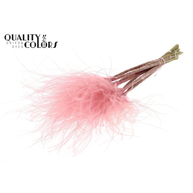 Gedroogd Stipa Vedergras | Kleur: Pastelroze | Stypha Penata Droogbloemen - dit zachte, pastelroze vedergras van B2B Flowers BV biedt floristen, interieurontwerpers en eventplanners een veelzijdige, onderhoudsarme basis voor elegante bloeminstallaties en seizoensgebonden styling. Met een lengte van ± 60 centimeter en circa 10 pluimpjes per bos levert dit natuurlijk materiaal consistente, luchtige structuren die uitstekend stapelbaar en combineerbaar zijn in grotere composities; ideaal voor trouwen, hospitality-projecten en retailpresentaties waarbij langdurige uitstraling en kleurvastheid essentieel zijn. Het product van het merk QC is zorgvuldig geselecteerd en gedroogd om kwaliteit, vorm en zachte pastelkleuren te behouden, waardoor het een duurzaam alternatief is voor verse bloemen en bijdraagt aan minder watergebruik en langere levensduur van decoratieprojecten.