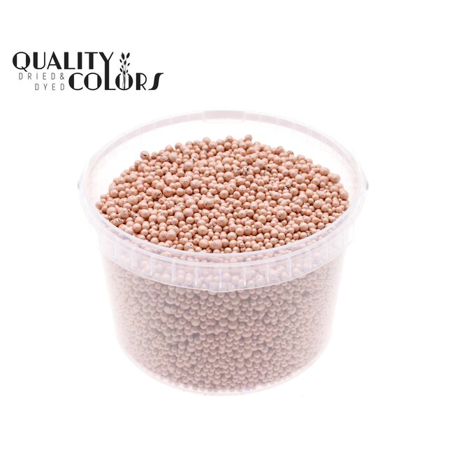 Terracotta Balletjes in Herbruikbare Emmer | Kleur: Oranje | Diameter 4 - 8 millimeter | Inhoud 3 liter | Per emmer zijn compacte, natuurlijke terracottaparels die dienen als functionele en esthetische basis voor professionele bloem- en interieurprojecten. Deze terracotta balletjes, geleverd door QC, combineren een hoge materiaalkwaliteit met duurzaamheid: het natuurlijke terracotta reguleert vocht, stabiliseert potgrond en draagt bij aan een langere levensduur van arrangements, terwijl de herbruikbare emmer het verpakkingsafval vermindert. Voor bloemisten, interieurontwerpers en event planners vormen ze een betrouwbare ondersteuning bij zowel gedroogde composities als zijdecreaties en versterken ze presentaties met gedroogde rozen, papaver, brem, ruscus en Helichrysum door nette, stabiele afwerking en consistente korrelgrootte.