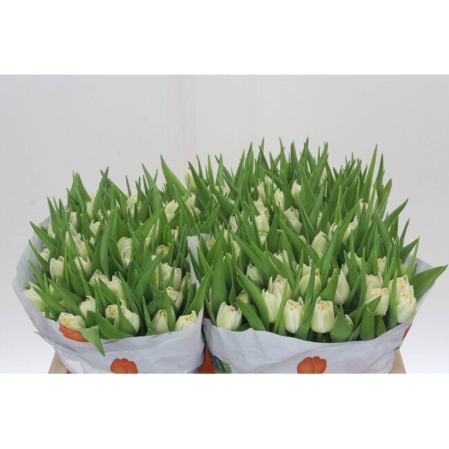 Dubbelbloemige Tulp “Iceberg” | Kleur: Wit | Lengte ± 37 centimeter | Gewicht ± 28 gram per tak | Per 50 stelen