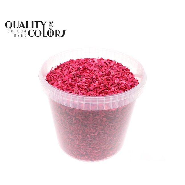 Houtsnippers in herbruikbare emmer met een kerskleurige (roze tint) afwerking — een professioneel materiaal voor bloemisten, interieurontwerpers, event planners en creatieve atelieromgevingen. Deze Houtsnippers van QC combineren esthetiek en functionaliteit: gelijkmatige deeltjes met een diameter van 5–8 millimeter, natuurlijke houten vezels en een inhoud van 10 liter per emmer (besteleenheid: per stuk). Dankzij de consistente korrelgrootte en de duurzame kleurbehandeling zijn ze uitermate geschikt als decoratief grondbed in vazen en schalen, vulling voor arrangementen, tafeldecor bij evenementen en als hobbymateriaal voor retail- en projecttoepassingen binnen de categorieën Houtsnippers, Hobbymaterialen en Huis & Hobby.