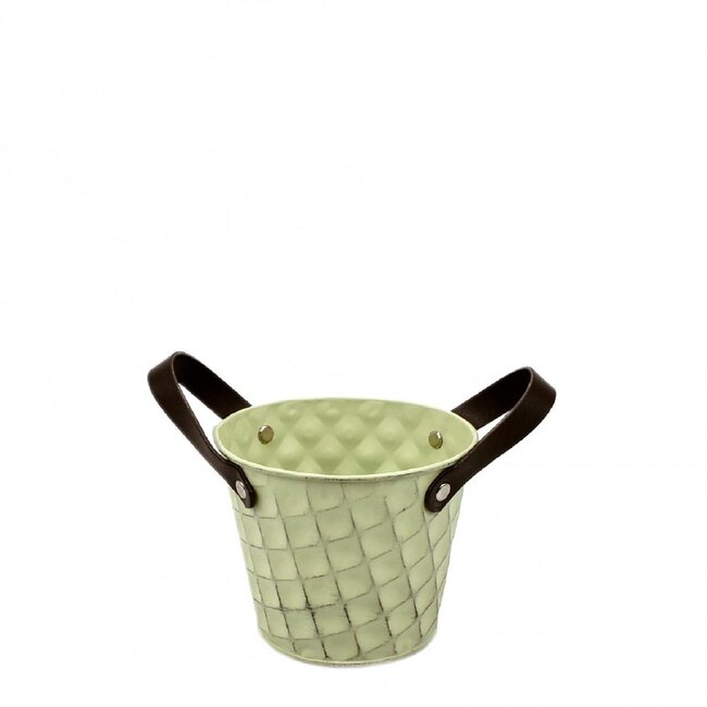 Productdetails en specificaties: Productcategorieën: Huis, Tuin & Deco; Huis & Hobby; Potten & Vazen. Toepassingen: Decoratie, Bloemisterij Artikelen. Kleur: Groen. Materiaal: Zink (gerecycled en recyclebaar). Afmetingen: diameter 12 cm, hoogte 10 cm. Verpakking/Besteleenheid: Per 10 Stuks (per 10 emmertjes). USP's: industrieel hoogwaardige afwerking, weer- en roestbestendig oppervlak, geschikt voor zowel gedroogde als zijden bloemen en eenvoudig te integreren in commerciële inrichtingsprojecten en eventconcepten.